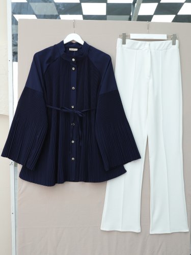 Gold Düğmeli Önü Ve Kolları Pliseli Bağcıklı Gömlek Laci