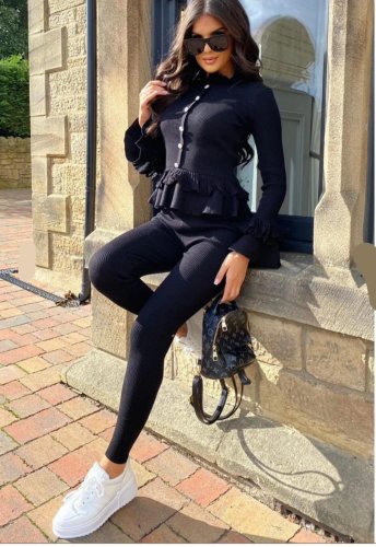 • Kadın uzun kollu yıldız düğme detay volanlı kazak ve pantolon ikili takım