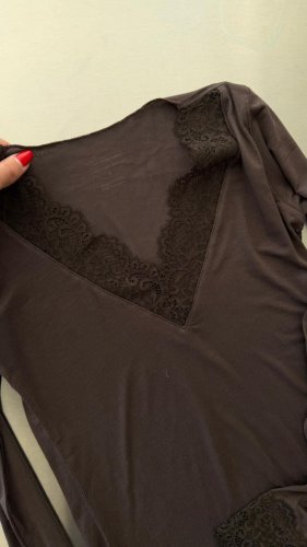 • Kadın uzun kollu v yaka dantel güpür detay bluz