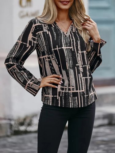 • Kadın uzun kollu v yaka desenli sandy bluz